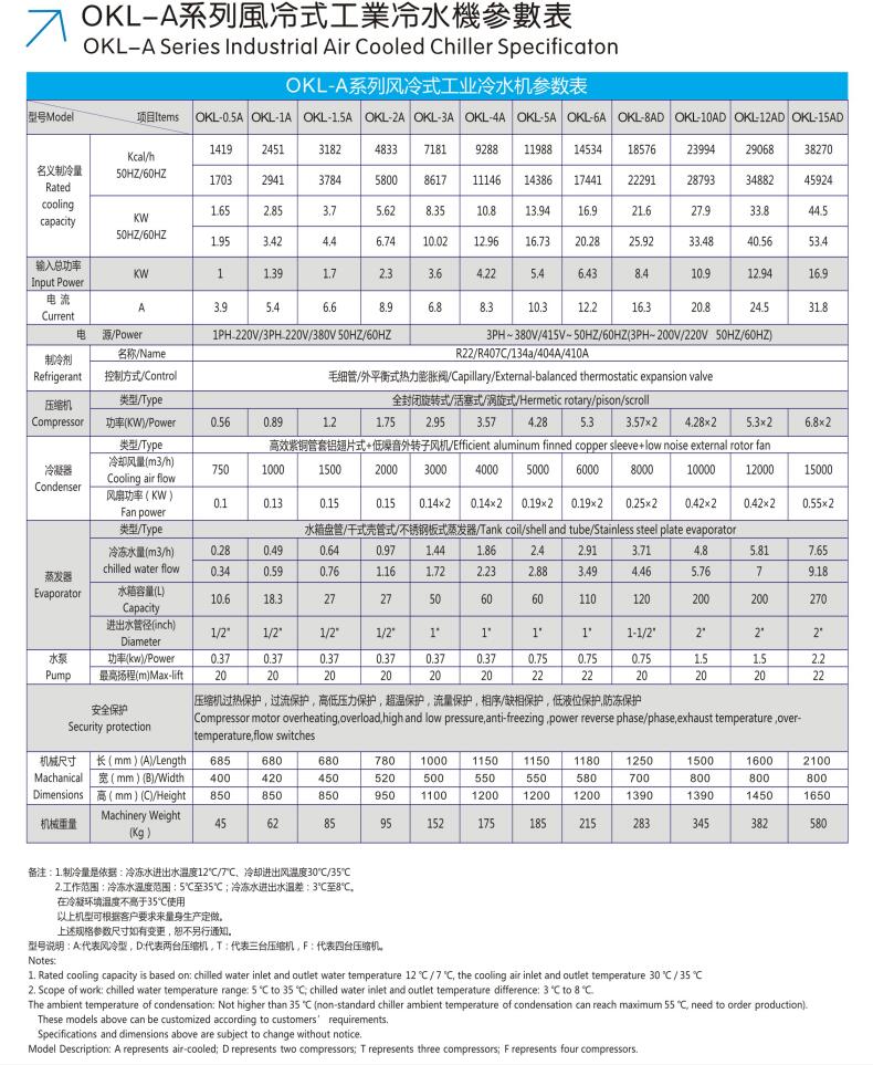 歐科隆30匹風冷冷水機組是一款高效節能的中大型商用制冷設備,采用一體化緊湊設計,制冷量達105kW,專為中型商業場所和工業應用設計。機組配備高效渦旋壓縮機(可選谷輪/丹佛斯品牌),制冷能效比(COP)達3.6以上,溫度控制范圍5℃~30℃,控溫精度±0.5℃。